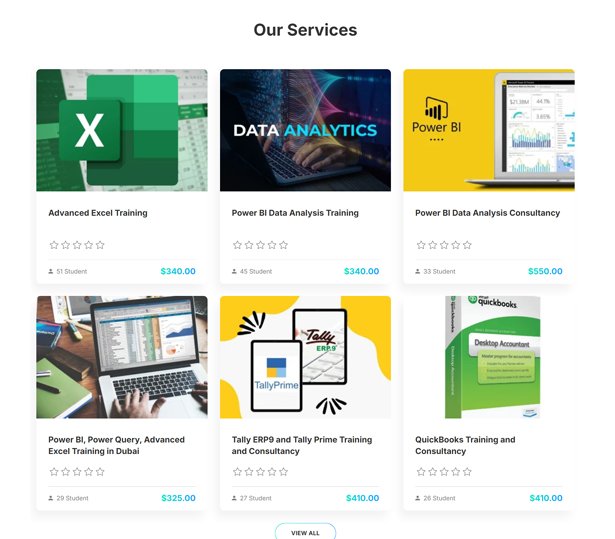 Explore our top-rated courses, including Power BI Data Analysis, Power Query, Power Query Editor, Advanced Excel, DAX, Tally ERP, Tally Prime, ZOHO Books, QuickBooks Training, Tally Services and Training, and Business Data Analysis. We offer these courses in Dubai, Sharjah, Ajman, Abu Dhabi, Ras Al Khaimah, Umm Al Quwain, Saudi Arabia, Oman, Qatar, Kuwait, and beyond.